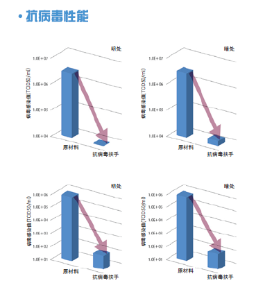 NAKA扶手抗病毒性:8小時能達到99%以上的抗病毒效果:原來的樹脂扶手與抗病毒配方的樹脂扶手在亮的地方與暗的地方分開進行了測試。隨著時間推移,抗病毒配方的樹脂扶手有了明顯的效果,8小時后觀測出了99%以上的抗病毒效果。根據(jù)安裝場所及使用條件,其結(jié)果是不同的,使用抗病毒扶手,降低了傳染病的風險,可作為維持衛(wèi)生清潔環(huán)境的產(chǎn)品所使用。如圖三